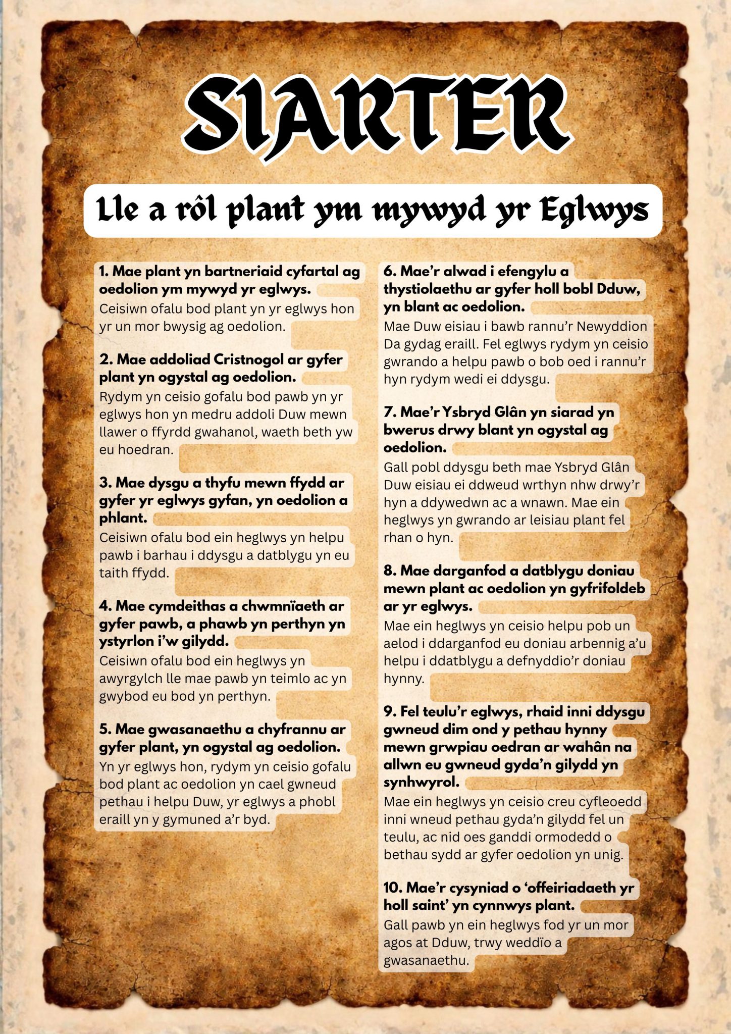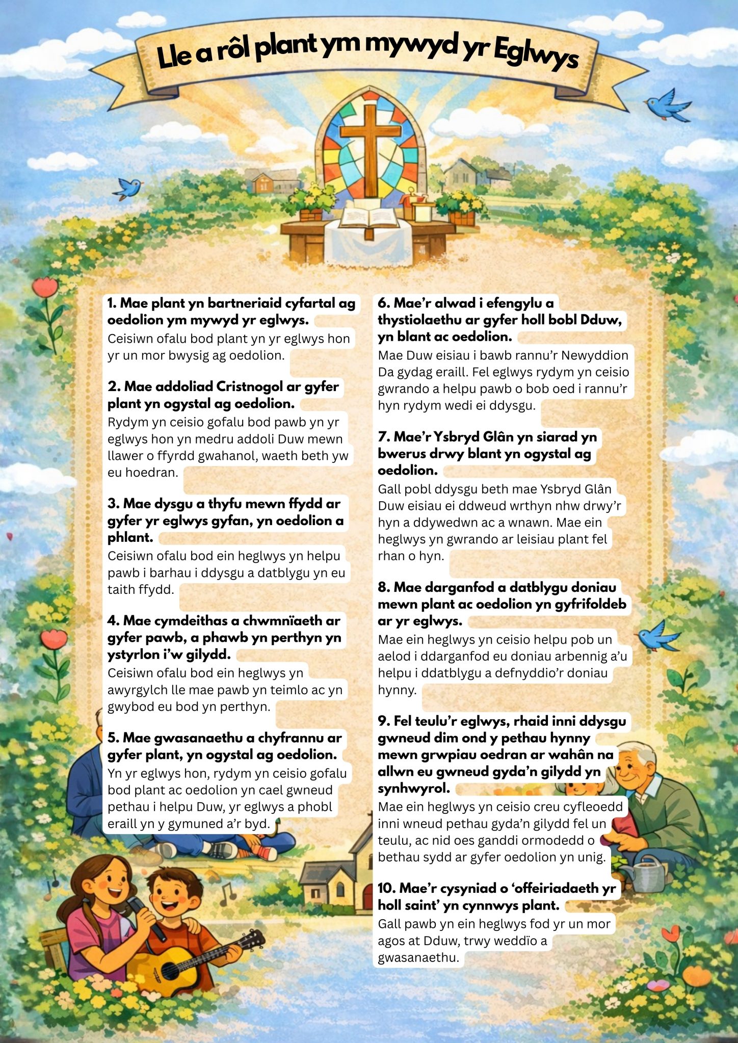 Isod ceir Siarter ar gyfer lle a rôl plant ym mywyd yr eglwys leol. Beth am fynd ati fel eglwys neu gofalaeth i drafod ei chynnwys: